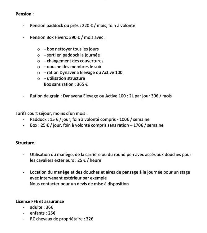 Tarifs 2025/2026 InfrastructuresJJ performanceL’association Rockfield StableL’équipeLes chevaux et poneys des écuriesNos partenairesPlanning 2025 / 2026PrésentationPrestationsTarifs 2025/2026